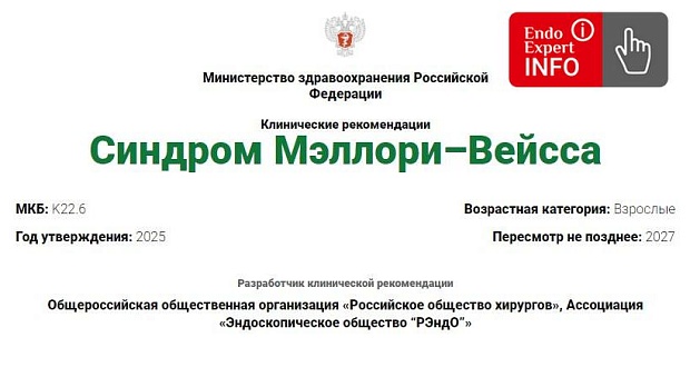 Документы и приказы: Синдром Мэллори-Вейсса (желудочно-пищеводный разрывно-геморрагический синдром). Клинические рекомендации 2025 - 2027