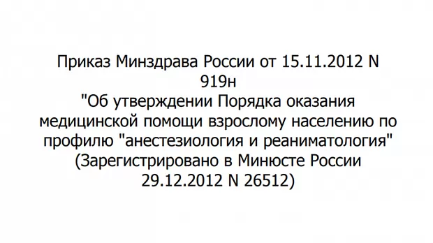 Документы и приказы: Порядок оказания медицинской помощи по профилям "анестезиология" и "реаниматология"