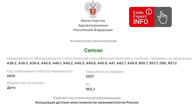 Документы и приказы: Сепсис. Дети. Клинические рекомендации 2025 - 2027