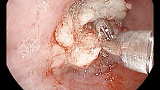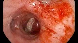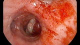 В левом главном бронхе определялось объемное образованием слизистого, плотного характера белесовато-серого цвета перекрывающий полностью просвет левого главного бронха, при взятии щипцовой биопсии фрагмент 3,0*1,5 удалялся полностью, просвет бронхов восстанавливался, без патологии слизистой.