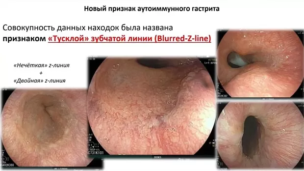 В рамках заседания эндоскопического общества профессиональному сообществу был представлен новый эндоскопический признак аутоиммунного гастрита — «тусклая зубчатая линия» (blurred Z-line). Автор разработки, врач-эндоскопист Никита Александрович Щербаченя, продемонстрировал коллегам потенциал данного ориентира для повышения точности первичной диагностики (new endoscopic sign).