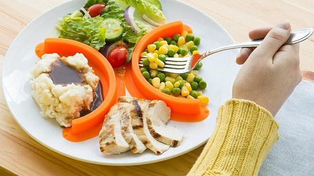 Чтобы не заниматься сложными математическими расчётами, диетологи советуют наполнять тарелку по следующему принципу: половину тарелки отдавать под овощи, а оставшуюся половину примерно в равных пропорциях под белковые и углеводные продукты. К белковым продуктам относятся как продукты с растительным, так и с животным белком. Это могут быть яйца, бобовые, творог, блюда из морской рыбы, птицы или красного мяса. Углеводная часть — это, как правило, гарнир: крупы, макароны или картофель.
