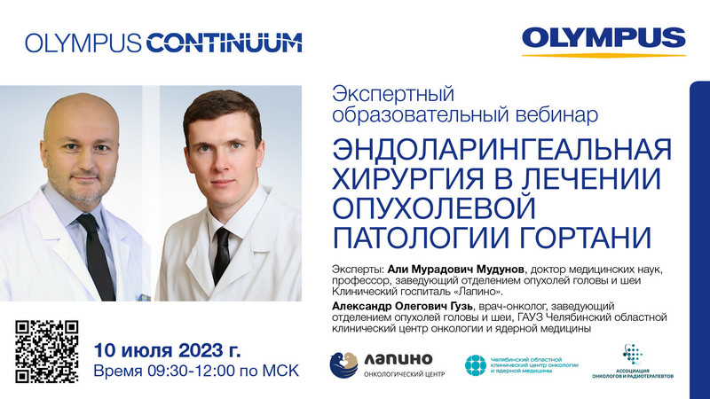 с радостью анонсируем образовательный вебинар «Эндоларингеальная хирургия в лечении опухолевой патологии гортани» с участием ведущих экспертов - Али Мурадовича Мудунова, д.м.н., профессора, заведующего отделением опухолей головы и шеи КГ "Лапино", и Александра Олеговича Гузя, врача-онколога, заведующего отделением опухолей головы и шеи, ГАУЗ «Челябинский областной клинический центр онкологии и ядерной медицины».