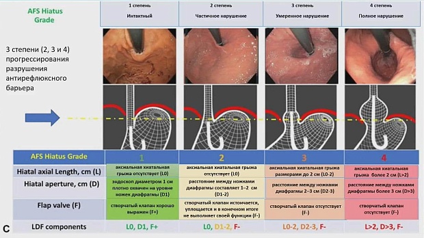 Классификация AFS подразделяет ПЖС (пищеводно-желудочное соединение = EGJ) на четыре степени в зависимости от тяжести анатомических нарушений:
