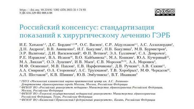 Статьи: Российский консенсус: стандартизация показаний к хирургическому лечению ГЭРБ 2025