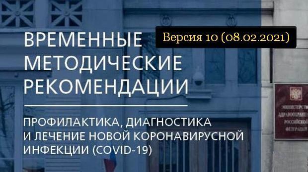 Документы и приказы: 10 версия от 8.2.21 ВРЕМЕННЫЕ МЕТОДИЧЕСКИЕ РЕКОМЕНДАЦИИ ПРОФИЛАКТИКА, ДИАГНОСТИКА И ЛЕЧЕНИЕ НОВОЙ КОРОНАВИРУСНОЙ ИНФЕКЦИИ (COVID-19)