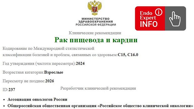 Документы и приказы: Рак пищевода и кардии КР237. Клинические рекомендации 2024 - 2026