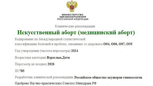 O04 (O04.0-O04.1, О04.3-О04.6, О04.8-О04.9) Медицинский аборт