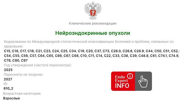 Документы и приказы: Нейроэндокринные опухоли - клинические рекомендации 2025-2027. Взрослые.