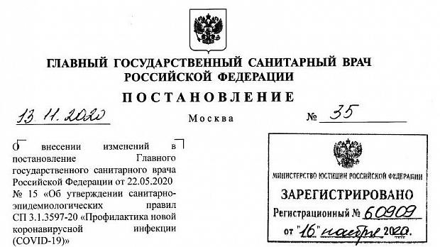 постановлением Главного государственного санитарного врача Российской Федерации от 13.11.2020 № 35