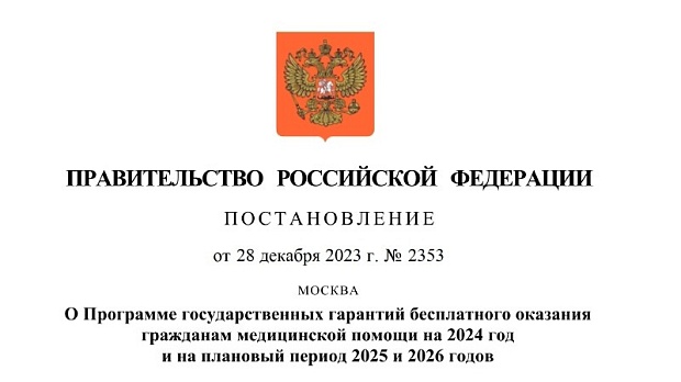 Документы и приказы: Постановление Правительства РФ от 28.12.23 № 2353 "О Программе государственных гарантий бесплатного оказания гражданам медицинской помощи на 2024 год и на плановый период 2025 и 2026 годов"