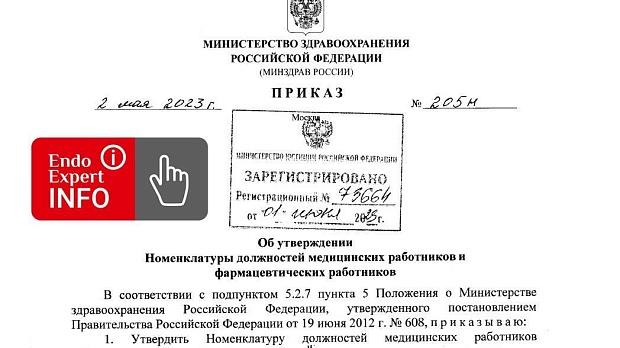 Документы и приказы: Приказ Минздрава РФ от 02.05.2023 № 205н "Об утверждении Номенклатуры должностей медицинских работников и фармацевтических работников"