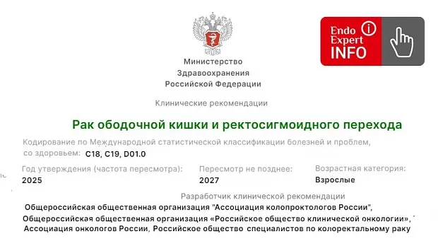 Документы и приказы: Рак ободочной кишки и ректосигмоидного перехода. Клинические рекомендации 2025 - 2027. Взрослые