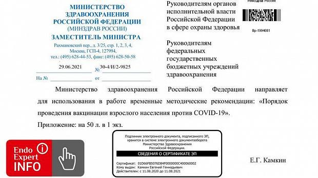 Министерство здравоохранения Российской Федерации направляет для использования в работе временные методические рекомендации: «Порядок проведения вакцинации взрослого населения против COVID-19».