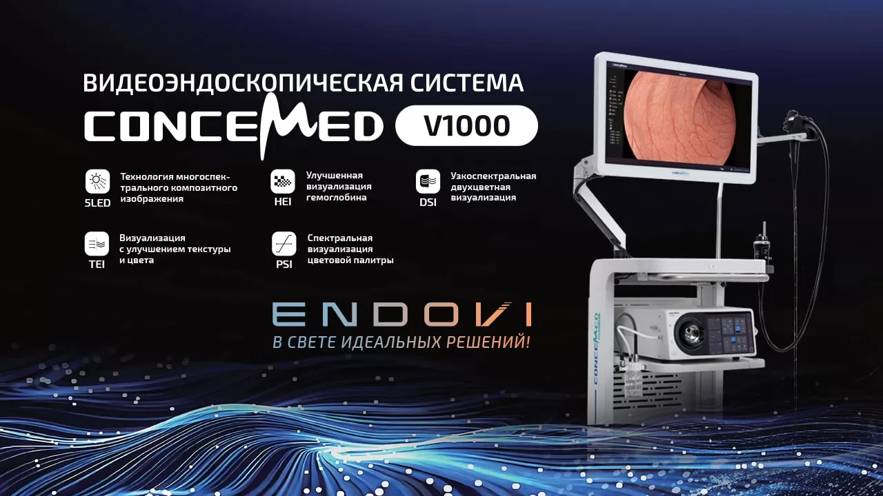 Система Concemed V-1000 — это передовое решение в области эндоскопии, сочетающее новейшие технологии визуализации и удобство использования. В состав системы входят видеогастроскоп, видеоколоноскоп, видеопроцессор, медицинский монитор и эндоскопическая тележка.