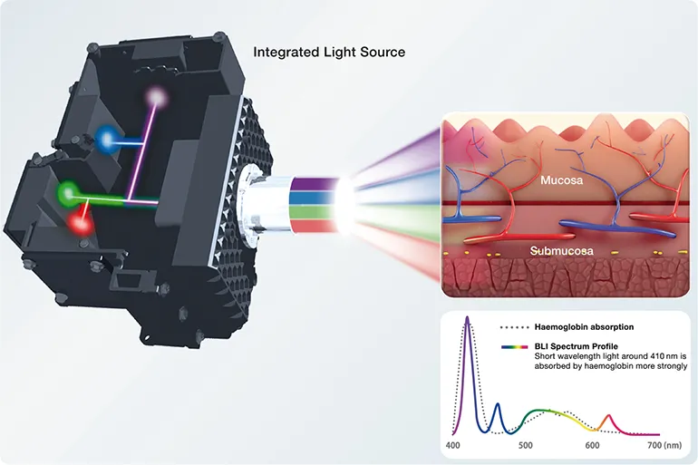 Одной из последних разработок компании является эндоскопическая система ELUXEO. Это высокотехнологичное решение, открывающие новые возможности при внутриполостном обследовании пациентов. В отличие от аналогов, это устройство использует 4 независимых источника света, генерирующих световые волны различной длины. Использование такого спектра обеспечивает максимально точную визуализацию процессов, происходящих в желудочно-кишечном тракте пациента.