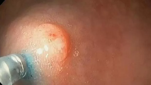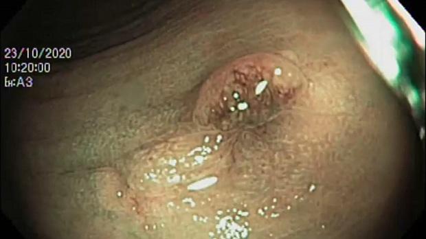 Женщина, 69 лет. Диагноз: рак правой молочной железы, стадия IA, pT1bN0M0, состояние после радикальной резекции молочной железы от 15.07.19г. При контрольном обследовании по данным ПЭТ-КТ: локальное повышение активности радиофармпрепарата на уровне дистального отдела сигмовидной кишки. При колоноскопии: на 20 см от ануса - аденома (NICE II) до 15 х 18 мм, на "ножке" до 20 мм (0-Ip). В прямой кишке на 15 см от ануса - эпителиальное образование до 3 х 4 мм (0-Is), со втяжением по центру, патологически извитыми сосудами. Выполнено эндоскопическое удаление обоих образований методом резекции слизистой оболочки (EMR). По данным планового гистологического исследования: 1) тубулярно-ворсинчатая аденома сигмовидной кишки с дисплазией эпителия низкой степени; 2) аденокарцинома прямой кишки in situ.