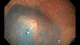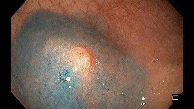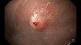 Женщина, 69 лет. Диагноз: рак правой молочной железы, стадия IA, pT1bN0M0, состояние после радикальной резекции молочной железы от 15.07.19г. При контрольном обследовании по данным ПЭТ-КТ: локальное повышение активности радиофармпрепарата на уровне дистального отдела сигмовидной кишки. При колоноскопии: на 20 см от ануса - аденома (NICE II) до 15 х 18 мм, на "ножке" до 20 мм (0-Ip). В прямой кишке на 15 см от ануса - эпителиальное образование до 3 х 4 мм (0-Is), со втяжением по центру, патологически извитыми сосудами. Выполнено эндоскопическое удаление обоих образований методом резекции слизистой оболочки (EMR). По данным планового гистологического исследования: 1) тубулярно-ворсинчатая аденома сигмовидной кишки с дисплазией эпителия низкой степени; 2) аденокарцинома прямой кишки in situ.