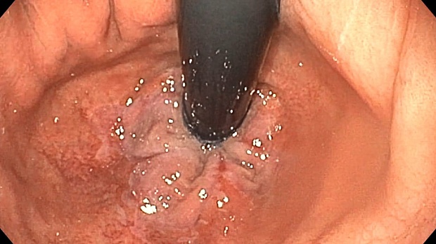 Краткое описание. При ретроградном осмотре пищеводно - желудочного перехода - хиатальное окно расширено, около 6 см; отмечается миграция кардиального отдела в средостение около 6 см; кардиальный жом смыкается, но период зияния пролонгирован.