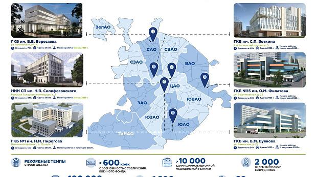 Всего их будет шесть – в НИИ скорой помощи им. Склифосовского, Боткинской больнице, ГКБ №15 им. О.М. Филатова, ГКБ им. В.М.Буянова, ГКБ им. В.В. Вересаева и ГКБ № 1 им. Н.И. Пирогова. В следующем 2023 году они уже вступят в строй.