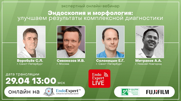 Сегодня в 13:00 по МСК на EndoExpert.ru состоится экспертный онлайн-вебинар «Эндоскопия и морфология: улучшаем результаты комплексной диагностики»