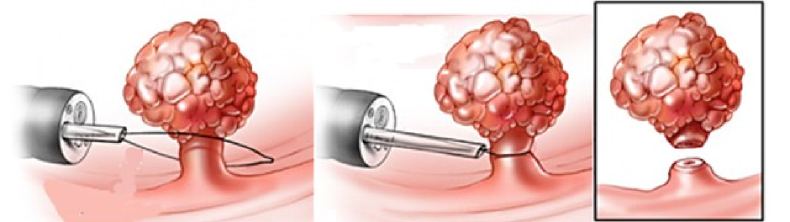 Когда камера, закреплённая на конце трубки эндоскопа, фиксирует место расположения полипа, врач приступает к этапу его удаления. Он проводится с помощью специальных мини-ножей. Полипы могут прижигаться электрическим током. По завершению операции все инструменты извлекаются из кишечника.