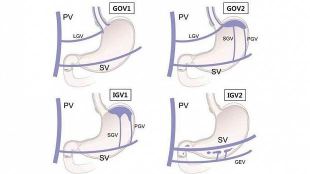 3) изолированный варикоз желудка 1 типа (IGV1) и