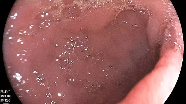 ЗАКЛЮЧЕНИЕ: Гетеротопия ткани поджелудочной железы в нисходящую ветвь ДПК, с стенозированием просвета I степени. Холангит.
