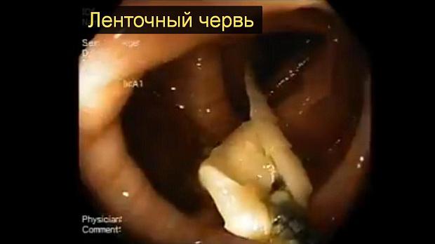 Ленточный червь, выявленный во время колоноскопии.