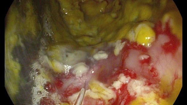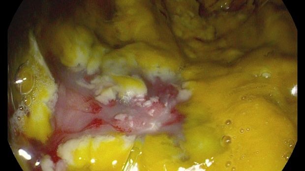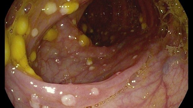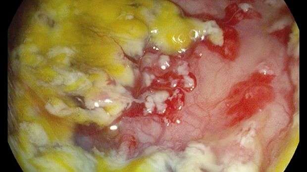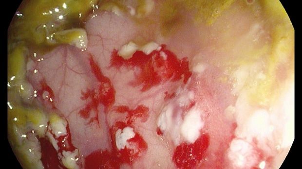 В связи с декомпенсацией основного заболевания, лейкоцитозом до 18 *10*9/l, пациенту была назначена антибактериальная терапия. Спустя 2 недели от начала антибактериальной терапии появились жалобы на диарею, не купирующейся симптоматической терапией.