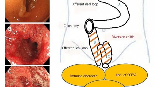 Диверсионный колит – неспецифическое воспаление, возникающее в отключенной кишке после наложения стомы. Данное состояние развивается у всех стомированных пациентов, но при этом симптомы (выделение слизи и/или крови, тенезмы, боли в животе, чувство тяжести или боль в прямой кишке) возникают только у 30% человек. Диагностика диверсионного колита основана на данных колоноскопии с гистологическим исследованием биоптата. Эндоскопические признаки диверсионного колита: отек, зернистость, петехиальные кровоизлияния, контактная кровоточивость слизистой, смазанность сосудистого рисунка. Гистологическая картина представлена признаками острого или хронического воспаления, эозинофильной инфильтрацией, нарушением архитектоники крипт, фолликулярной лимфоидной гиперплазией и крипта-абсцессами. Основной метод лечения диверсионного колита – ликвидация стомы. Единых подходов к медикаментозному лечению на сегодняшний день нет.