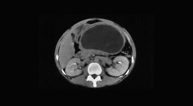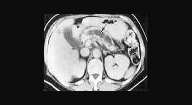 Наиболее частым осложнением хронического панкреатита являются псевдокисты (рис. 5), асцит (рис. 6) или тромбоз селезеночной вены. Панкреатические псевдокисты имеют место у 25 % пациентов. Они могут вызывать абдоминальную боль, тошноту, рвоту или желтуху. Примерно в 10 % случаев псевдокисты связанны с псевдоаневризмами, которые могут давать опасные для жизни кровотечения. Могут наблюдаться и бессимптомным псевдокисты. При наличии симптомов псевдокисты должны быть дренированы с использованием хирургической, эндоскопической или радиологической техники.