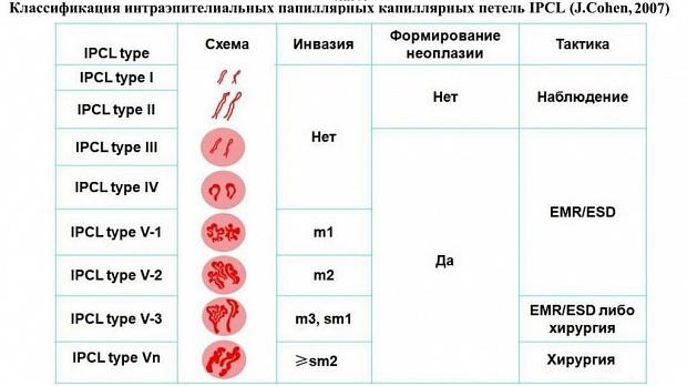 Классификация паттерна внутрисосочковых капилляров (IPCL)