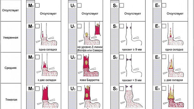 Таблица 1. Система оценки Савари-Миллера для рефлюкс-эзофагита и его осложнений