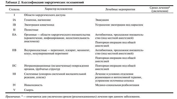 Иллюстрация №2: Таблица 2. Классификация хирургических осложнений Примечание. * — отмечаются дни увеличения сроков (рекомендованных) лечения при данном заболевании.