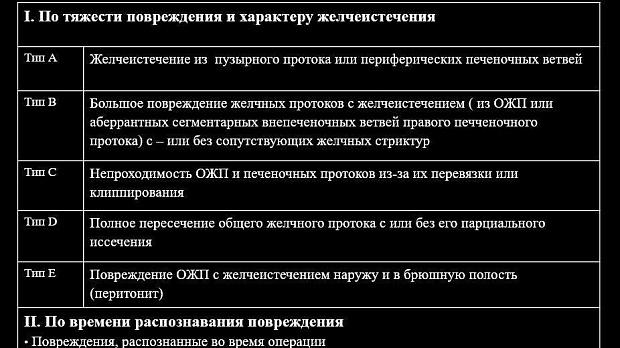 Классификация повреждений желчных протоков по Э.И. Гальперину 2008