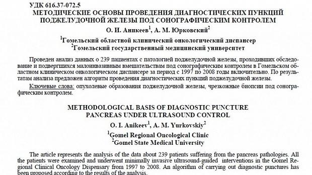 METHODOLOGICAL BASIS OF DIAGNOSTIC PUNCTURE PANCREAS UNDER ULTRASOUND CONTROL