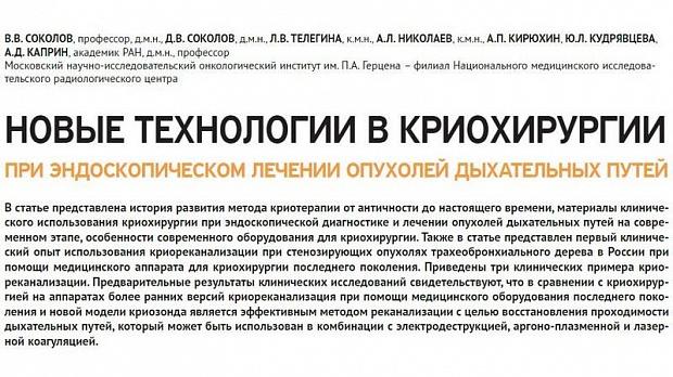 НОВЫЕ ТЕХНОЛОГИИ В КРИОХИРУРГИИ ПРИ ЭНДОСКОПИЧЕСКОМ ЛЕЧЕНИИ ОПУХОЛЕЙ ДЫХАТЕЛЬНЫХ ПУТЕЙ