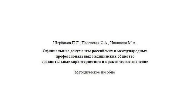 0912 Официальные документы российских и международных профессиональных медицинских обществ: сравнительные характеристики и практическое значение: методическое пособие. М.А. Иванцова, П.Л. Щербаков, С.А. Палевская, С.В. Джантуханова 2020. – 22 с.