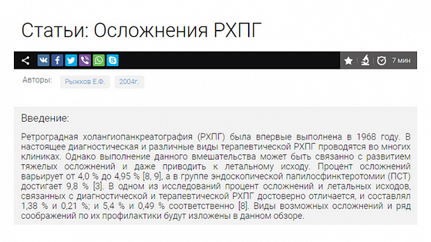 Ретроградная холангиопанкреатография (РХПГ) была впервые выполнена в 1968 году. В настоящее диагностическая и различные виды терапевтической РХПГ проводятся во многих клиниках. Однако выполнение данного вмешательства может быть связанно с развитием тяжелых осложнений и даже приводить к летальному исходу. Процент осложнений варьирует от 4,0 % до 4,95 % [8, 9], а в группе эндоскопической папилосфинктеротомии (ПСТ) достигает 9,8 % [3]. В одном из исследований процент осложнений и летальных исходов, связанных с диагностической и терапевтической РХПГ достоверно отличается, и составлял 1,38 % и 0,21 %; и 5,4 % и 0,49 % соответственно [8]. Виды возможных осложнений и ряд соображений по их профилактики будут изложены в данном обзоре.