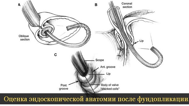 Эндоскопическая оценка анатомии после фундопликации играет важную роль в оценке результатов оперативного лечения и предоперационном планировании неудачной фундопликации. Были предприняты попытки охарактеризовать внешний вид новообразованного желудочно-пищеводного клапана после успешной пластики, а также