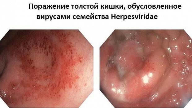 Поражение толстой кишки, обусловленное вирусами семейства Herpesviridae.
