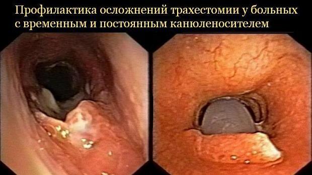 в значительной степени ухудшает результат операции, вызывая у больных ранние и поздние послеоперационные осложнения. Ненадлежащие ведение трахеостомированных пациентов может привести к хроническому канюленосительству и возникновению осложнений при замене трахеостомической трубки, вплоть до летального исхода.