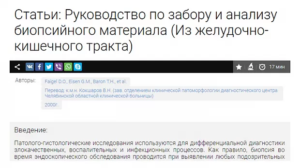 Забор биопсийного материала необходимо осуществлять для проведения дифференциальной морфологической диагностики между злокачественными, воспалительными и инфекционными процессами. Технические варианты включают щипковую биопсию, щеточную цитологию, петлевую эксцизию и аспирационную биопсию. При злокачественных поражениях наиболее диагностически эффективным является забор 8-10 кусочков. Пациенты с пищеводом Барретта для выявления дисплазии должны проходить повторные эндоскопические исследования с биопсией. У больных с пищеводом Барретта и дисплазией тяжелой степени забор материала для выявления аденокарциномы должен выполняться из четырех квадрантов через каждые 1-2 см. Эндоскопическая резекция слизистой может использоваться для удаления злокачественных или предраковых патологических очагов слизистой оболочки. Инфекционные заболевания требуют множественных биопсий, а при наличии язв кусочки должны браться как из краев, так и из центра дефектов. Щеточная цитология и получение культуры вирусов являются вспомогательными методами. Инфекция Нр может быть диагностирована путем взятия биопсии из желудка с последующим гистологическим исследованием или проведением быстрого уреазного теста. Забор материала из угла желудка дает наибольший процент выявления Нр у больных с нелеченой инфекцией, но у пролеченных пациентов или лиц принимающих ингибиторы протонной помпы либо антибиотики биопсию следует проводить из слизистой оболочки тела и дна желудка. Полипы желудка должны подвергаться биопсии, либо, при возможности, удаляться. Удаление полипов желудка связанно с более высоким риском кровотечения, чем полипэктомия из толстой кишки, что ставит вопрос о проведении пост операционной антисекреторной терапии. Забор множественных биоптатов из тонкой кишки показан при обследовании лиц с диареей, целиакией или инфекцией. Аденомы ДПК могут носить спорадический характер или быть ассоциированными с семейным аденоматозным полипозом и должны по возможности удаляться. Патологические очаги в толстой кишке должны удаляться во время эндоскопического исследования (полипэктомия, эндоскопическая резекция патологически измененного участка слизистой оболочки) или подвергаться биопсии, если они множественные или их удаление технически не возможно. У пациентов с острым колитом биопсия может помочь установить этиологию заболевания. Пациенты с длительно существующим хроническим колитом подлежат систематическому наблюдению для выявления дисплазии, которая может быть ассоциирована с высоким риском развития рака. Забор множественных биоптатов у пациентов с диареей из нормально выглядящей слизистой оболочки толстой кишки позволяет выявить микроскопический колит.