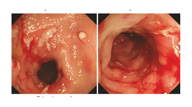 Диффузный афтозный илеит с диффузно-воспаленной слизистой оболочкой