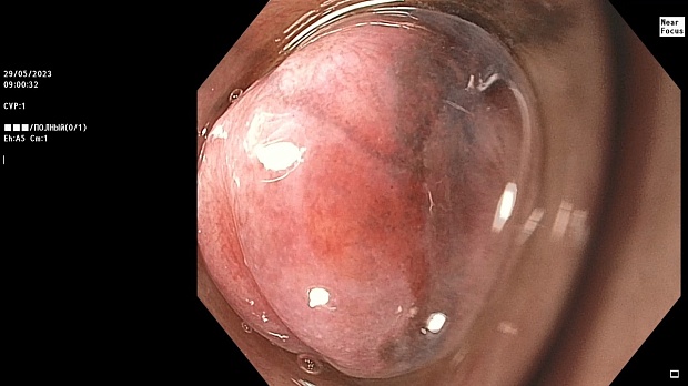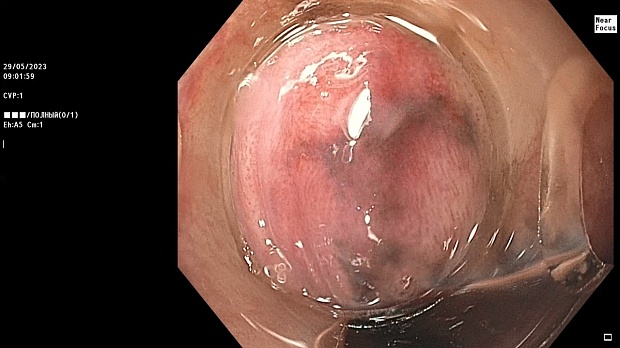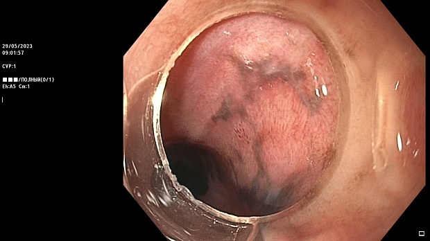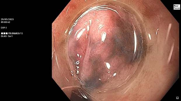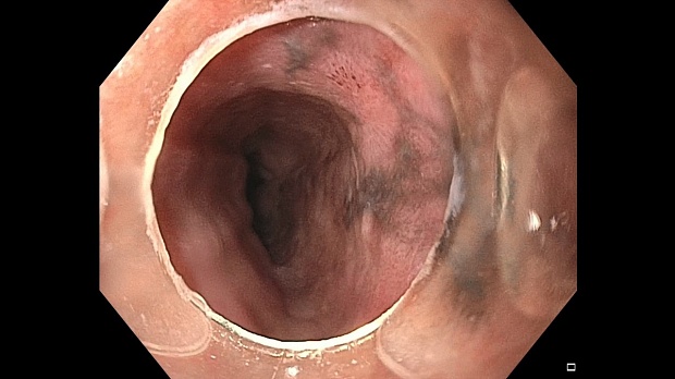 Пациентка З., 83 лет была направлена в МНИОИ им. П.А. Герцена, филиал ФГБУ «НМИЦ Радиологии» с подозрением на меланому пищевода. Из анамнеза известно, что ранее меланомы с поражением кожи и других злокачественных новообразований у больной не было, по результатам КТ и МРТ увеличенных региональных лимфатических узлов и признаков отдаленного метастазирования выявлено не было. Важно отметить, что у пациентки из сопутствующих заболеваний имелись B-12- и железодефицитная анемия, по поводу которых применялись препараты витамина B12 и железа (железа (II) сульфат). Жалоб активно больная не предъявляла, однако, при детальном сборе анамнеза пациентка сообщила о наличии у нее эпизодов изжоги в течение последних двух месяцев. При этом, данная симптоматика не купировалась нерегулярным приемом омепразола и облегчение наступало только при использовании комплексных антацидов, содержащих бензокаин.