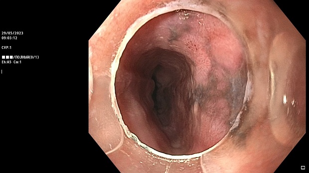 На основании результатов эндоскопическом исследовании данных – наличие мелких черно-коричневых включений, расположенных субэпителиально, отсутствие специфической опухолевой инфильтрации, а также – данных анамнеза, было выставлено заключение о поражении слизистой оболочки пищевода препаратами сульфата железа – сидероз пищевода.