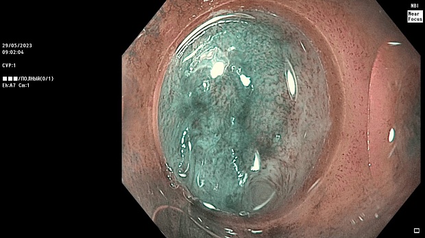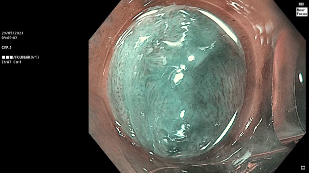 Непосредственно в день обращения пациентке было выполнена эзофагогастродуоденоскопия с использованием оборудования экспертного класса – видеоэндоскопической системы Olympus EVIS Exera III и видеоэндоскопа Olympus GIF-HQ190 с технологией близкофокусной узкоспектральной эндоскопии (Dual Focus).