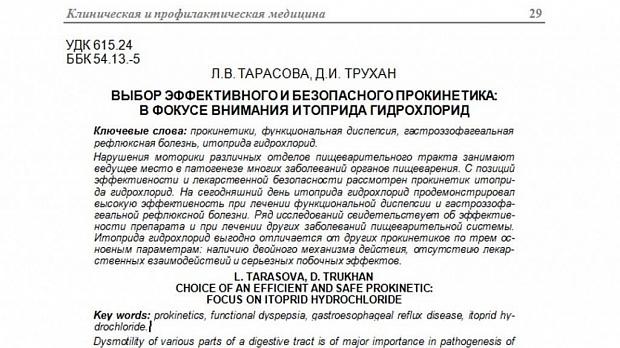 Цель исследования – рассмотреть с позиций эффективности и лекарст- венной безопасности прокинетик итоприда гидрохлорид.