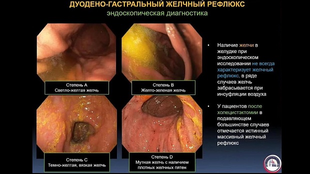 У пациентов после холецистэктомии в подавляющем большинстве случаев отмечается истинный массивный желчный рефлюкс